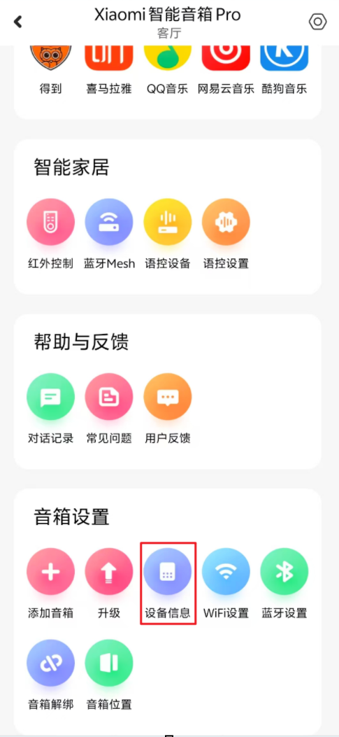 2.设备ID就是你小米音箱App里面点击首页的更多,然后拉到最下音箱设置里面的设备信息最上面的名字 例如:Xiaomi 智能音箱 Pro
